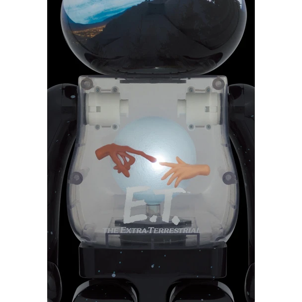 Now, the series takes on Steven Spielberg’s beloved 1982 film E.T. with this BE@RBRICK that captures memorable scenes! This 1000% BE@RBRICK figure measures 27.6” tall and features the iconic moon scene recreated on the head along the movie’s logo and the movie poster image of E.T. and Elliott touching fingers on the chest. Plus, the clear torso also features a moon design on the inside that even lights up!