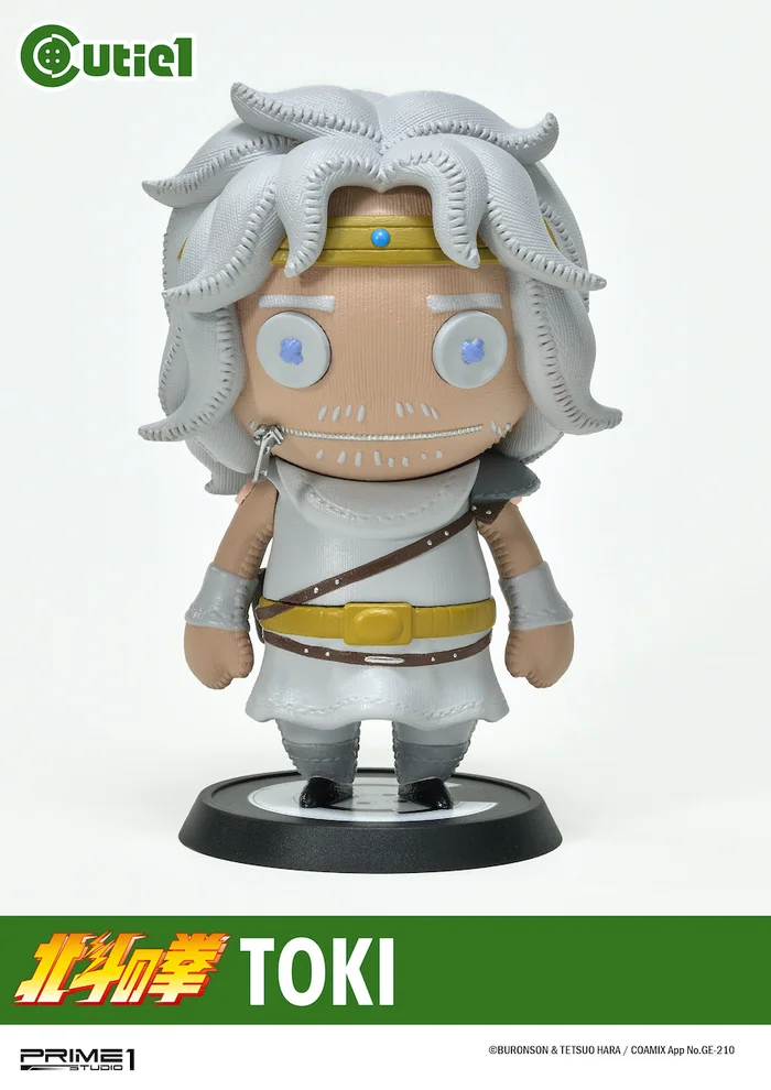 From Prime 1 Studio comes this Cutie1 figure of elegant pacifist and healer Toki from Fist of the North Star. Measuring 4.7″, he looks like a soft, handmade plush, but he’s actually made of soft vinyl. Note the all-over textured details that give him a stitched together, soft felt appearance. He even has button eyes and a zipper mouth! He stands securely on his base via magnets in his feet and the base itself. His long white hair and angelic outfit complete with his golden headband has been faithfully recreated! Display the second of the four Hokuto brothers with your plushies… or your figures… or somewhere in between?