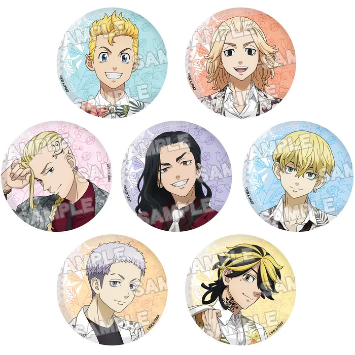 The guys of Tokyo Revengers have traded in their Toman uniforms for snazzy outfits with bold floral patterns for these collectible pinback buttons from ORANGE ROUGE! Each measures 3″ and features original artwork of a different guy along with their image color in the background.