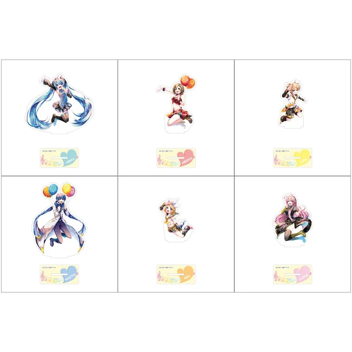 From Eterno Recit comes new goods straight from the event “Hatsune Miku Creators Party”! These collectible acrylic stand keychains feature artwork created just for the event by illustrator Shirayuki Towa that shows Vocaloids Miku, Meiko, Kaito, Rin, Len, and Luka in a bright, cheerful art style! Each also comes with a themed base in their image color. Display them on your keys or as part of your collection!