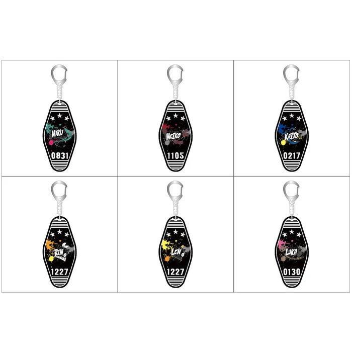 From Eterno Recit comes new goods straight from the event “Hatsune Miku Creators Party”! These collectible motel-style keychains are themed after Vocaloids Miku, Meiko, Kaito, Rin, Len, and Luka, and each one features a color splash graphic that incorporates their name and characteristic icons along with their birth date as the room number. Collect your favorites and display them on your keys!