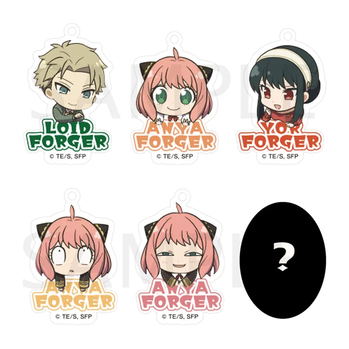 Introducing the Forger family from the hit anime Spy x Family as cute, colorful, acrylic keychains! This complete set comes with six keychains of the Forgers in chibi form, including one mysterious keychain that has yet to be revealed!
